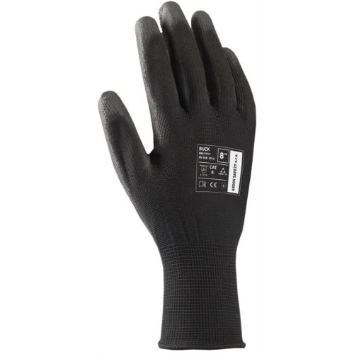 Hatékony védelem és rugalmasság: A BUCK kesztyűk poliészter és poliuretán kombinációjával készülnek, melyek biztosítják a kényelmet és a hatékony védelmet. A kesztyű anyaga rugalmas, könnyen felvehető és tökéletesen illeszkedik az ujjak teljes hosszában és a tenyér kerületén.