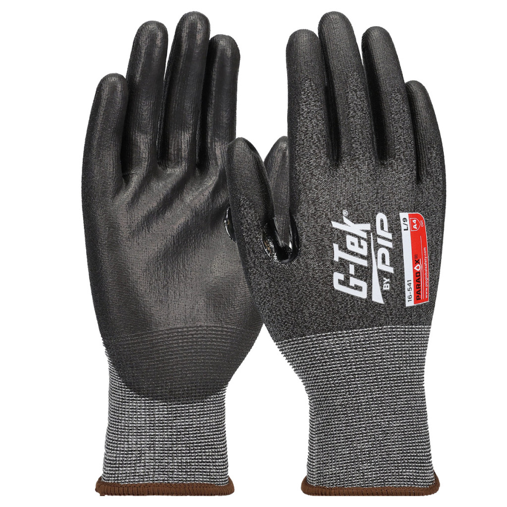 A G-TEK Paradox PU tenyérmártott munkavédelmi kesztyű 21 tűsűrűségű PolyKor® anyagból készült, ANSI A4 vágásállósággal és magas tapintásérzékenységgel.