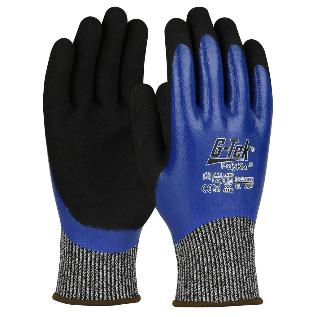 A G-TEK PolyKor vágásbiztos munkavédelmi kesztyű vékony, nagy vágásállóságú béléssel és dupla mikrotapadású nitrilbevonattal biztosít maximális kézügyességet és tapadást száraz, nedves vagy olajos környezetben.
