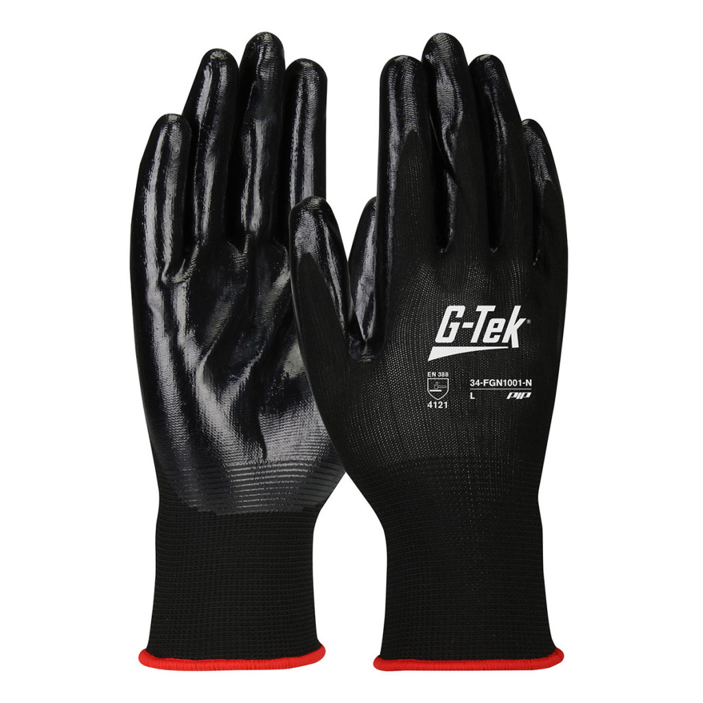 G-TEK poliészter kötött, nitril tenyérmártott munkavédelmi kesztyű